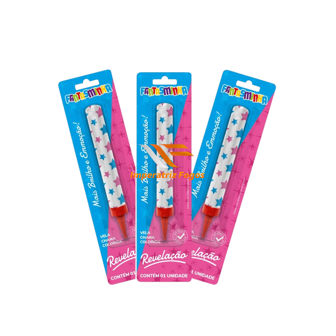 Conhecida tambem como Vela Fontana, este produto vai garantir muito brilho para seu chá revelação. Especialmente desenvolvido para uso em ambientes internos, não produz fumaça e nem cheiro forte.